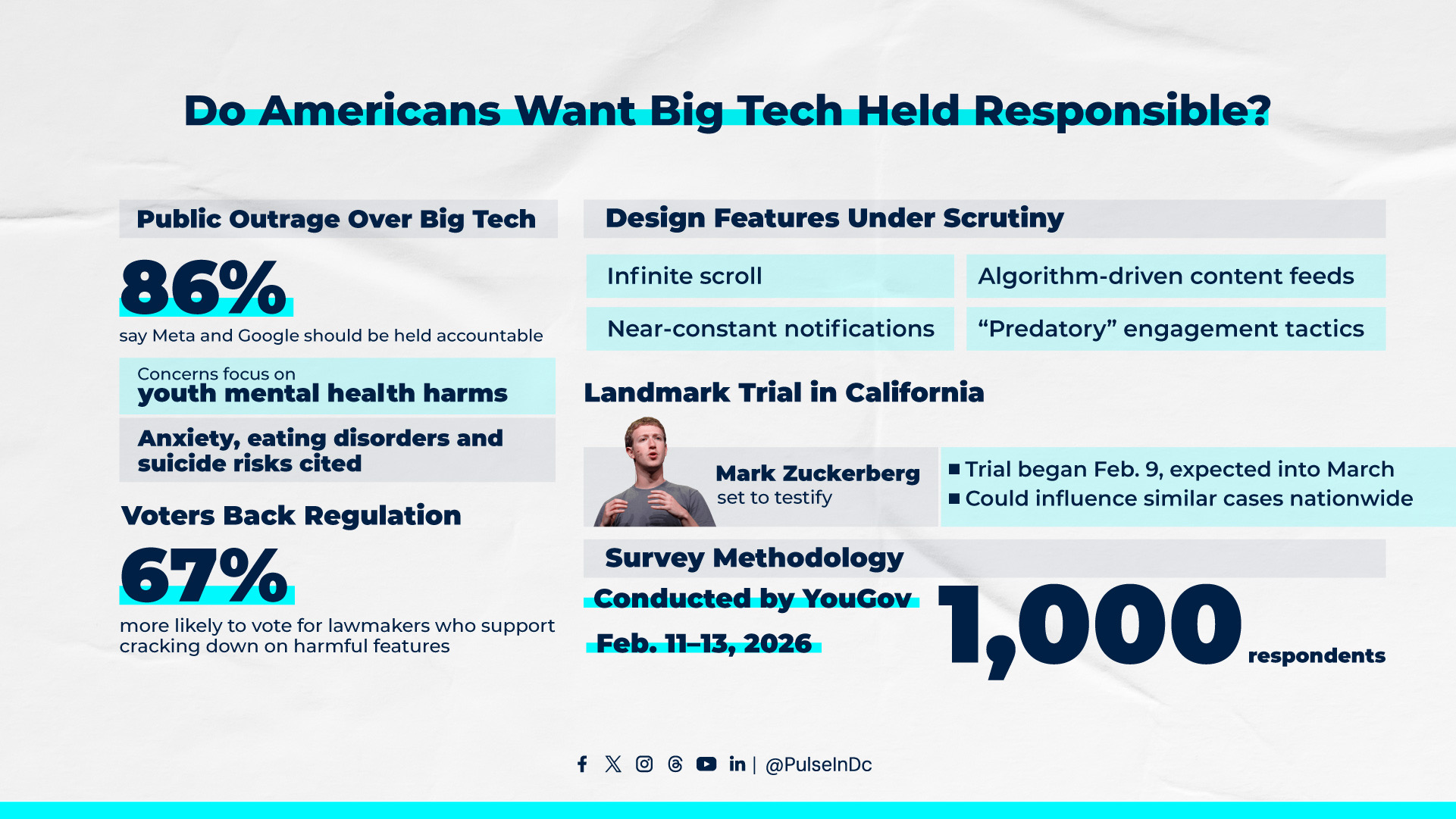 A new survey finds 86% of Americans want Meta and Google held accountable for their role in the social media addiction crisis, as a landmark California trial against Big Tech moves forward.