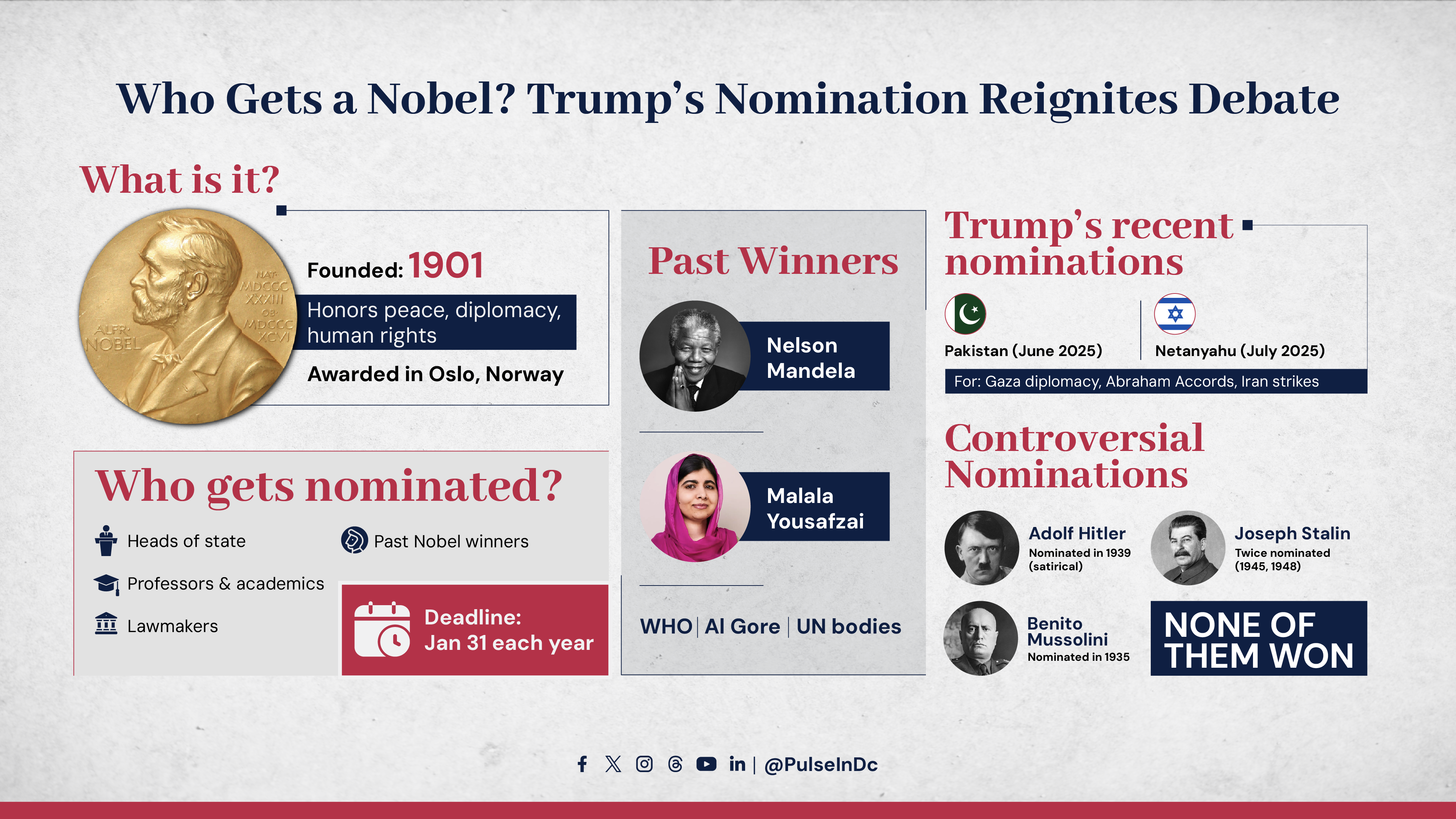 A visual guide to the Nobel Peace Prize: how it works, who can nominate, and why Trump’s latest nomination sparked fresh debate.