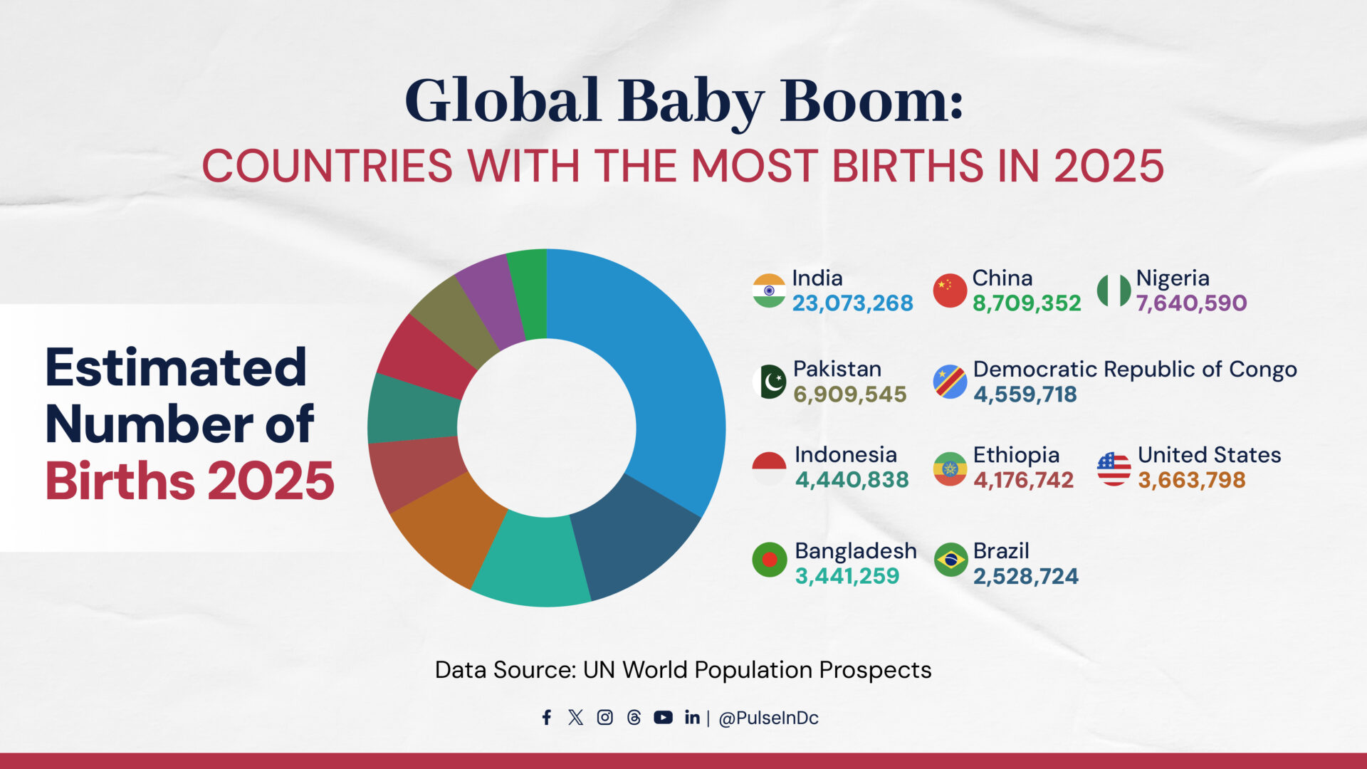 India is projected to record a staggering 23.1 million births, more than double China’s 8.7 million, making it the country contributing the largest share of global population growth.