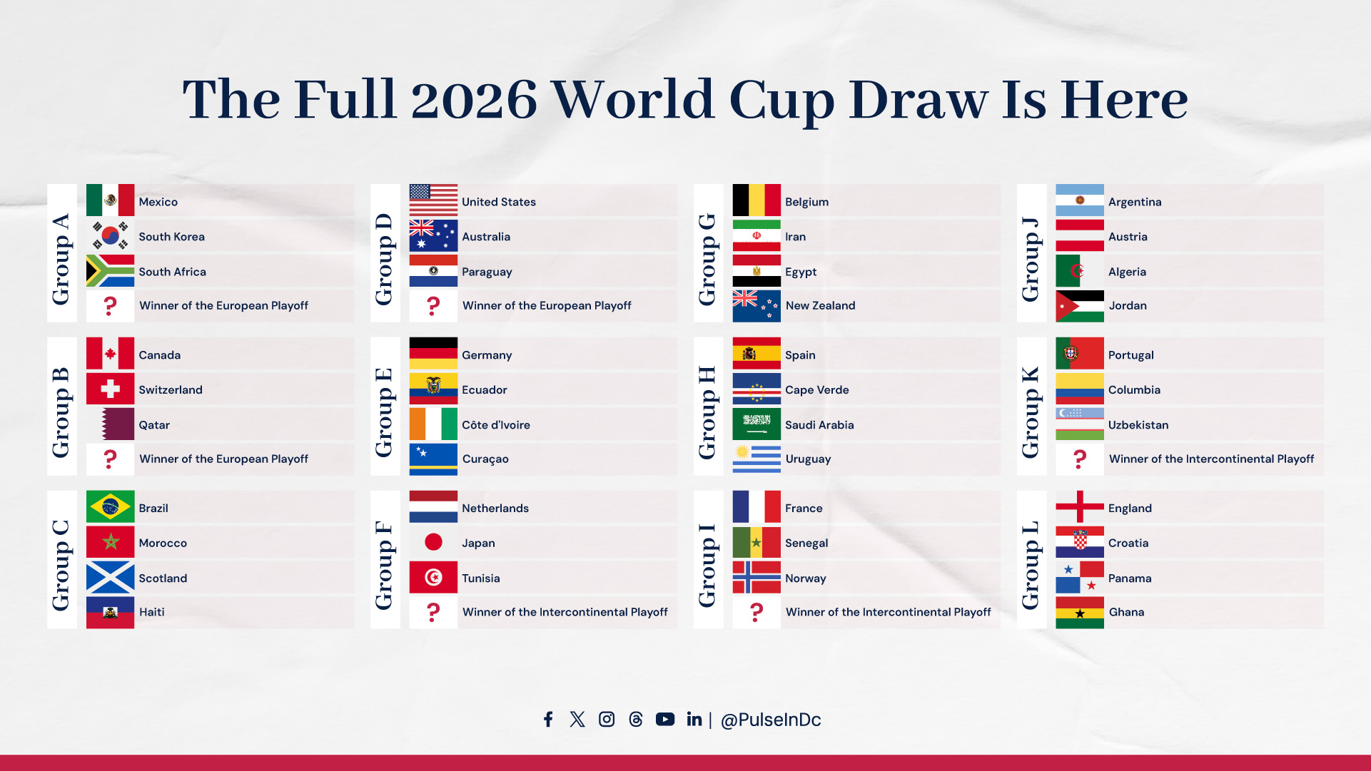 The 2026 World Cup draw is officially set, revealing twelve powerful groups that will shape the biggest tournament ever staged.