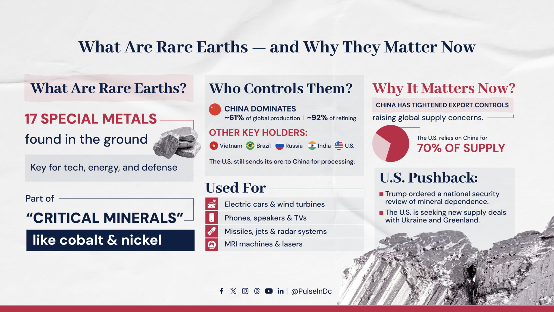 A quick explainer on rare earth minerals — the 17 hidden metals powering phones, cars, and defense tech, and why China’s dominance over them is reshaping global trade and U.S. strategy.