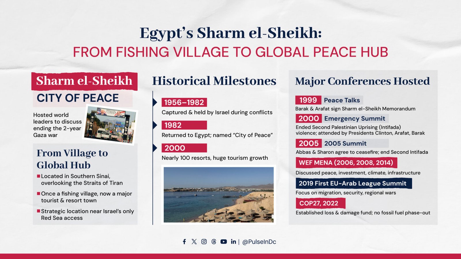 Sharm el-Sheikh, Egypt, has transformed over the decades from a quiet Red Sea fishing village into one of the Middle East’s most prominent diplomatic and international hubs, earning its nickname “City of Peace.”